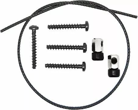 - Bestehend aus: 4 x Schrauben, 2 x Klemmschrauben, Drahtseil (400mm)