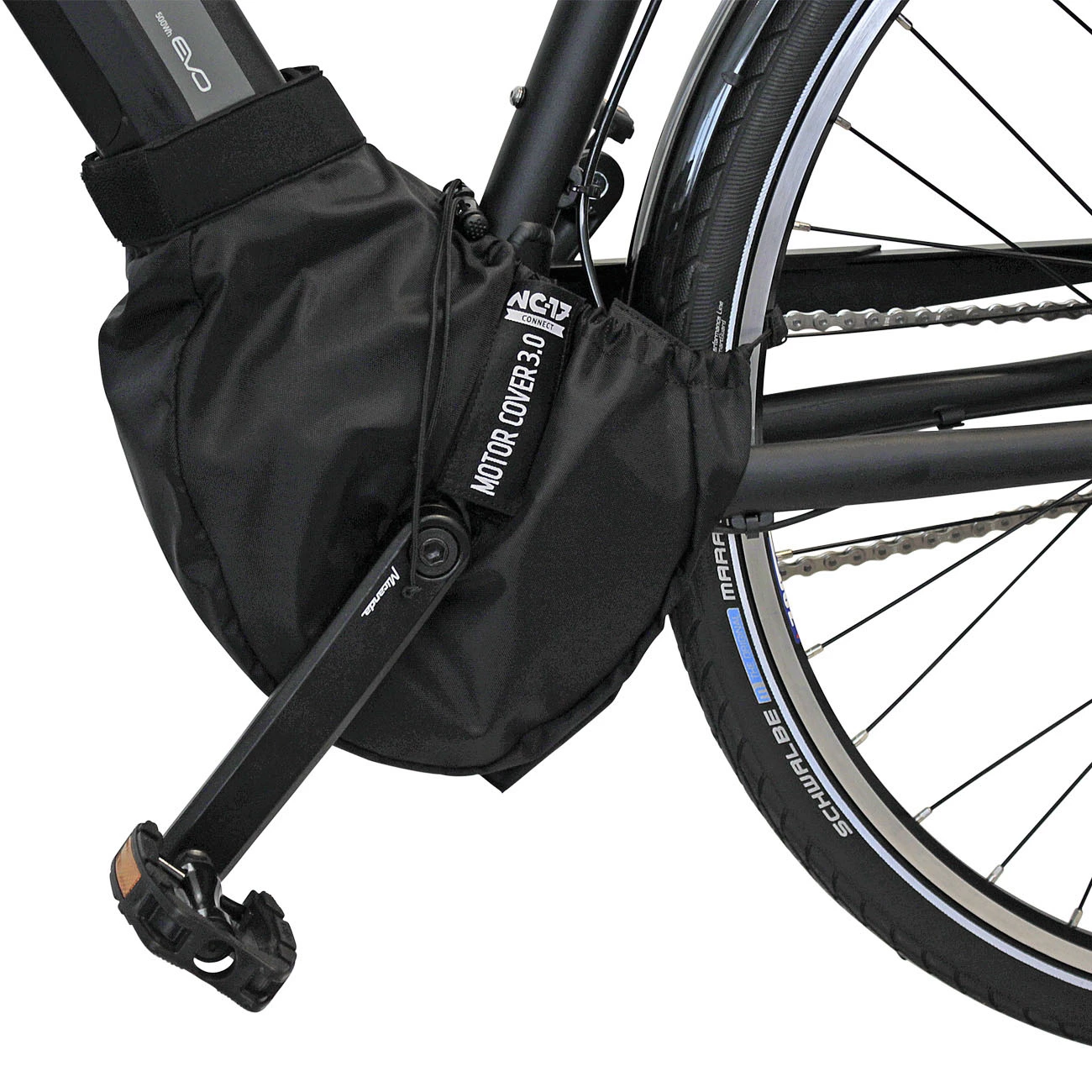 Das neue NC-17 Connect Motor Cover 3.0 wurde speziell für Elektrofahrräder mit integriertem Unterrohrakku entwickelt und schützt den Akku vor Spritzwasser, Schäden, wie Kratzer zum Beispiel verursacht durch Steinschlag, oder anderen Umwelteinflüssen, wie Staub, Schmutz oder Straßensalz.