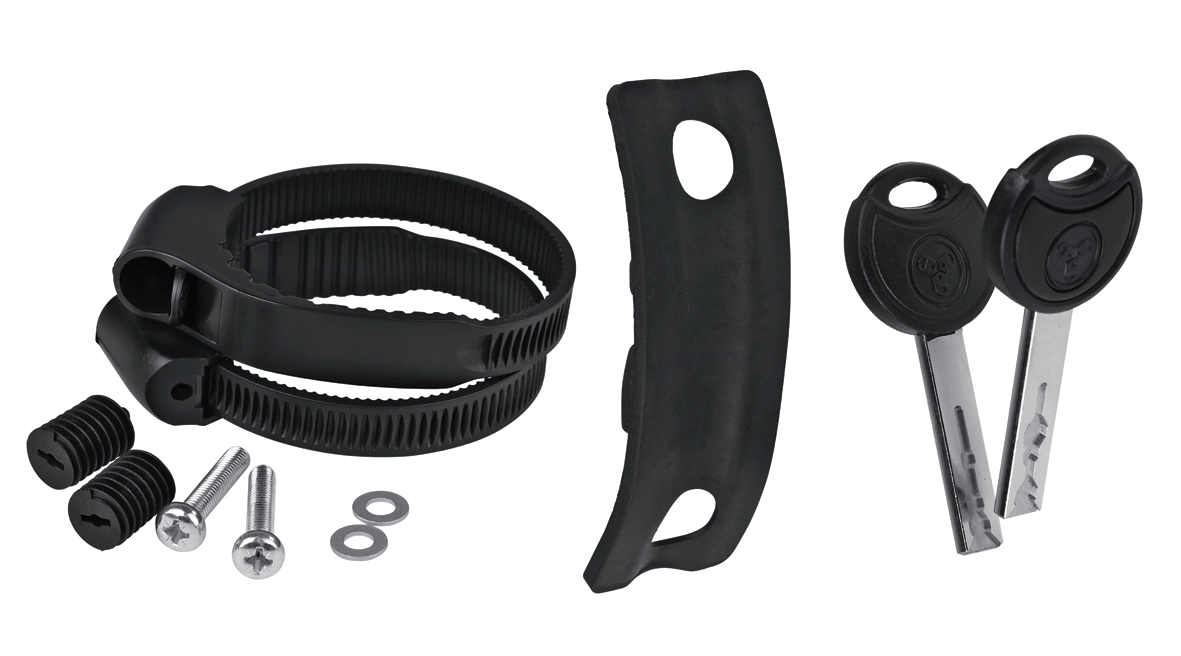 - Montage sowohl fest am Rahmen verschraubt (Flaschenhalterösen) als auch mit Klett-Straps möglich