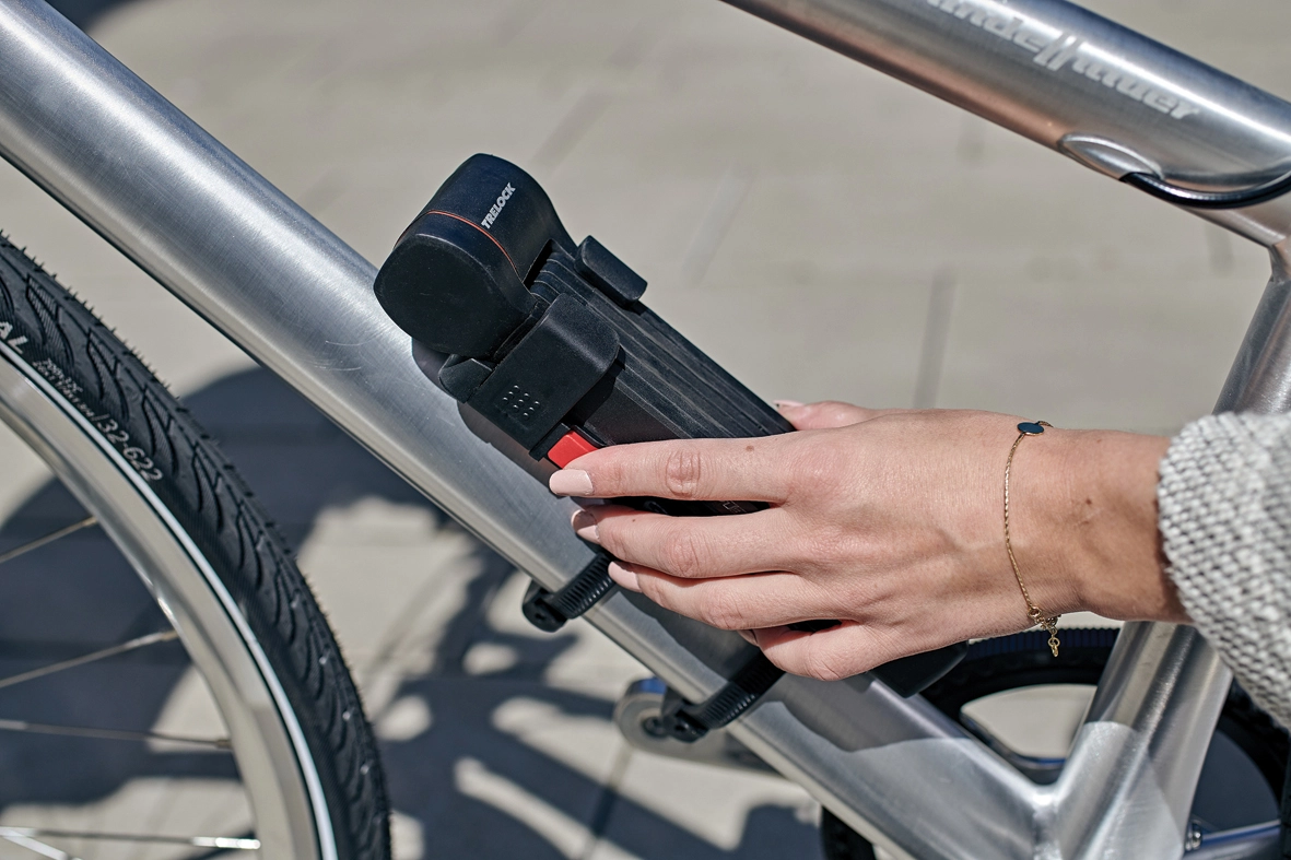 Das FS 480 COPS Faltschloss von Trelock bietet neben gummierten Schließstäben aus gehärtetem Stahl zudem einen 360°-drehbaren Schlosskopf, mit dem man sich beim Abschließen nicht mehr verrenken muss.